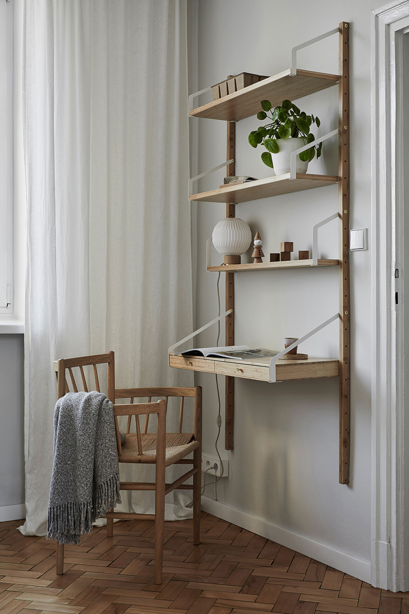 Naturalne światło wpadające z dwóch stron budynku oraz amfiladowy układ pomieszczeń stworzyły wyjątkową atmosferę i podkreśliły wieloplanowość wnętrza, które stało się zarówno miejscem pracy, jak i żywą wizytówką podejścia JAM KOLEKTYW do projektowania.